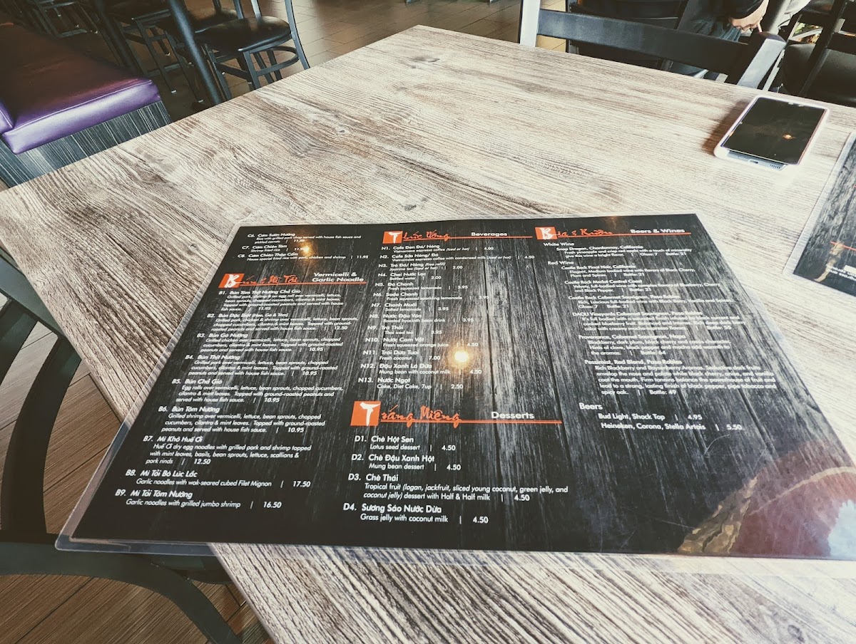 For rice lovers, the Rice Plates provide filling options like Com Suon Nuong (rice with pork chop), Com Ga Nuong (rice with grilled chicken), and Com Bo Luc Lac (rice with wok-seared filet mignon). These are perfect for a hearty meal packed with flavor.